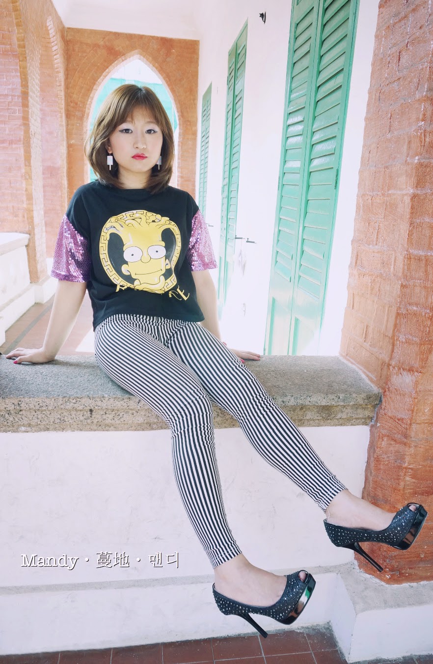 這時候我就來襯個型味重一點的黑白間條貼身褲子