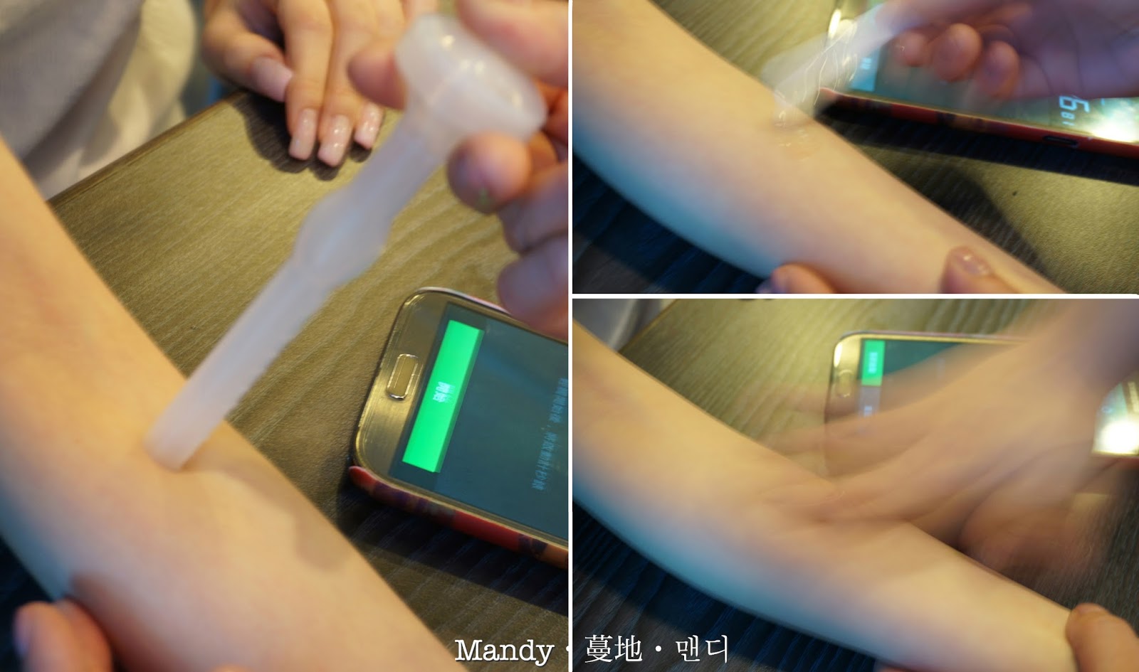 測試是每次在手上的不同位置塗上精華