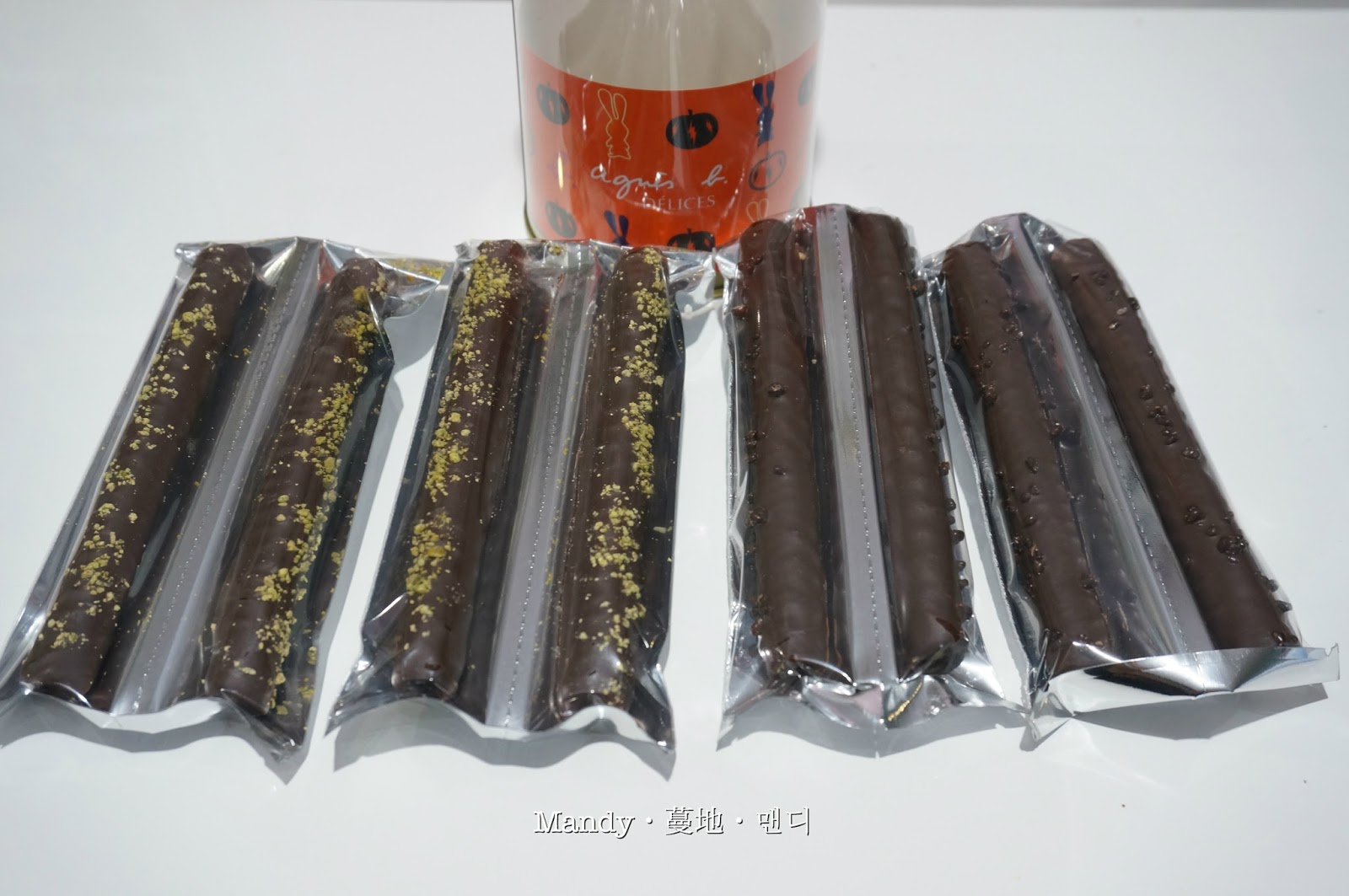 以及4條〖開心果朱古力脆條〗
