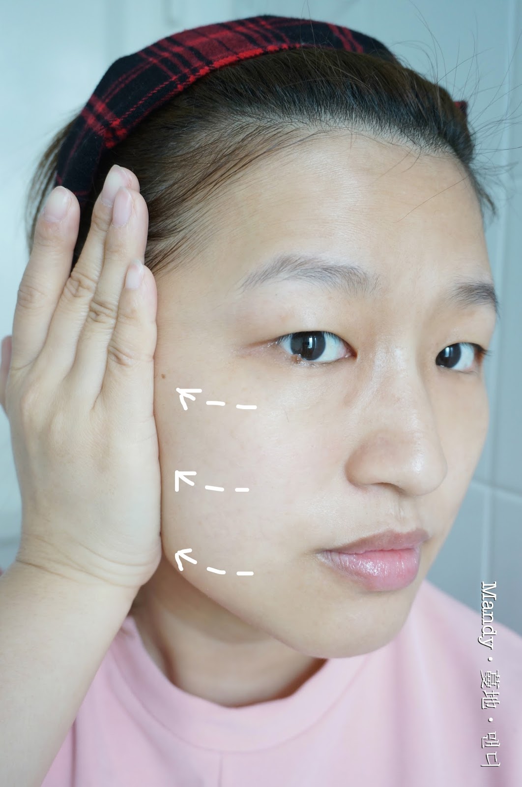 應該是按著下巴中央位置才對呢~