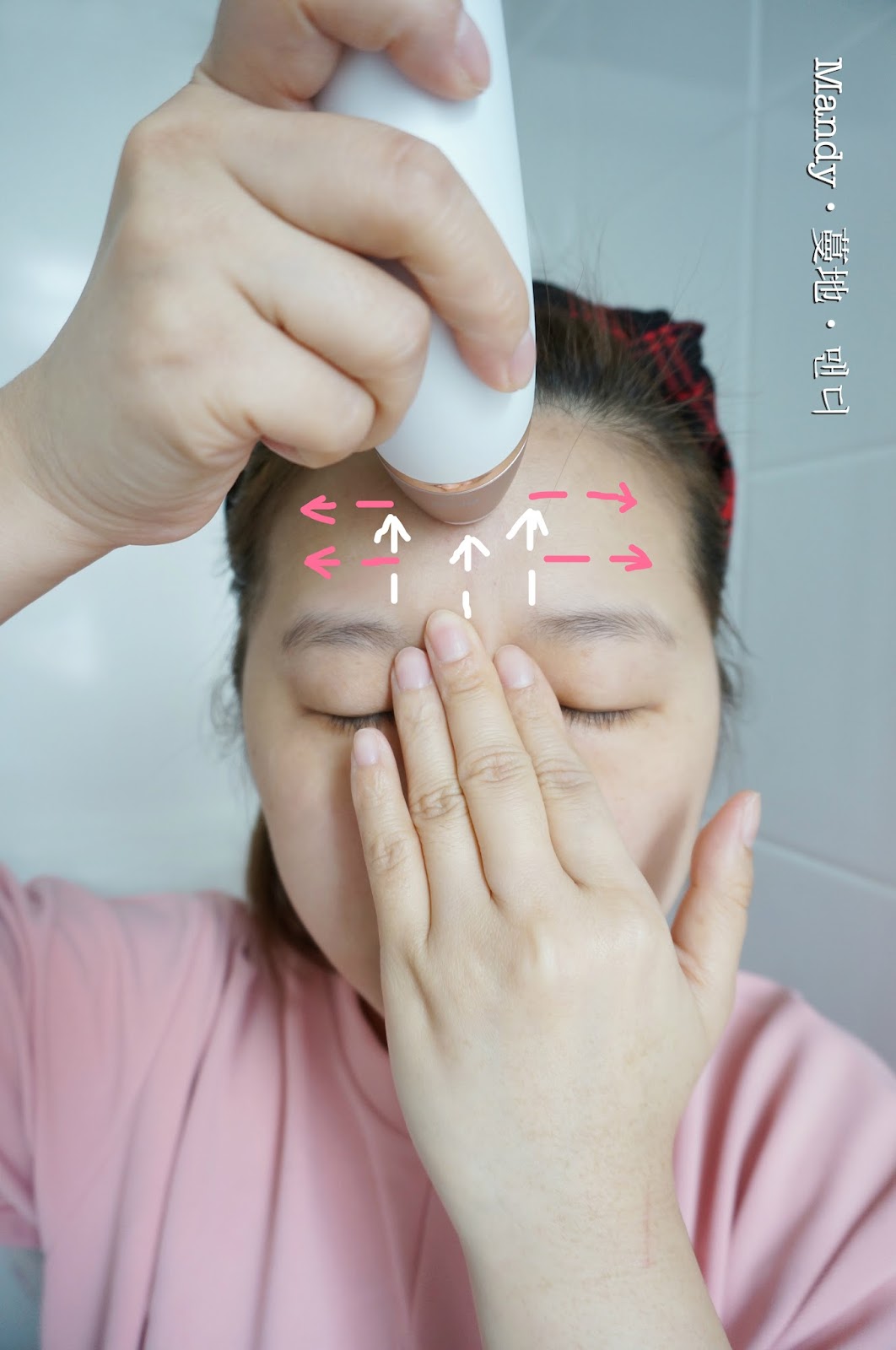 所以還是用手仔按著額頭正中央位置