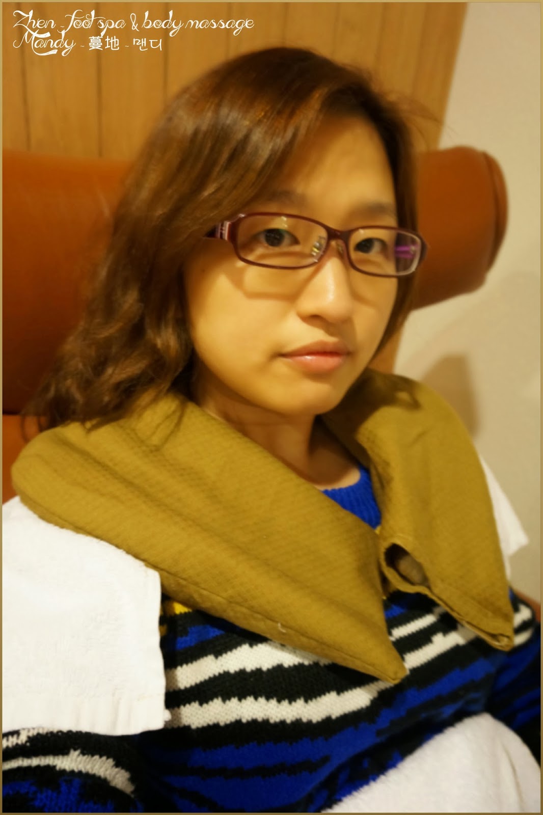 技師用毛巾幫我抹腳跟包好!