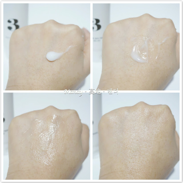 塗完1,2號後,3號帶來了滋潤感,令肌膚潤澤起來,